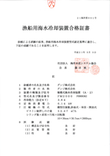 9月3日に社団法人 海洋水産システム協会様にお越しいただき、試験を受け、無事、主機駆動形海水冷却装置 『フィッシュメイト』FM2000 の型式認定が取得できましたのでご報告いたします。